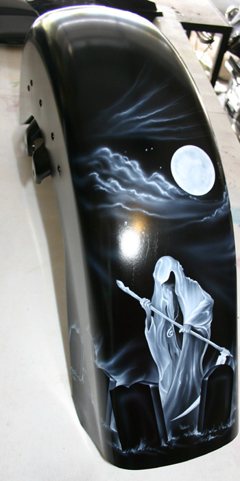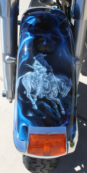 Skulls, Harley Logos. This is one bad ass ride now! This job was through CR Designs, Phoenix.